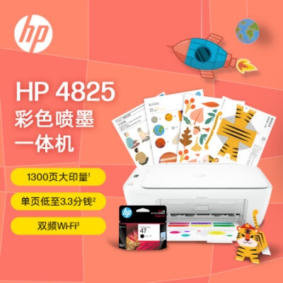 惠普(HP)DJ 4825彩色无线喷墨打印机家用 大印量低成本照片打印机学生家用 微信打印(打印 复印 扫描)